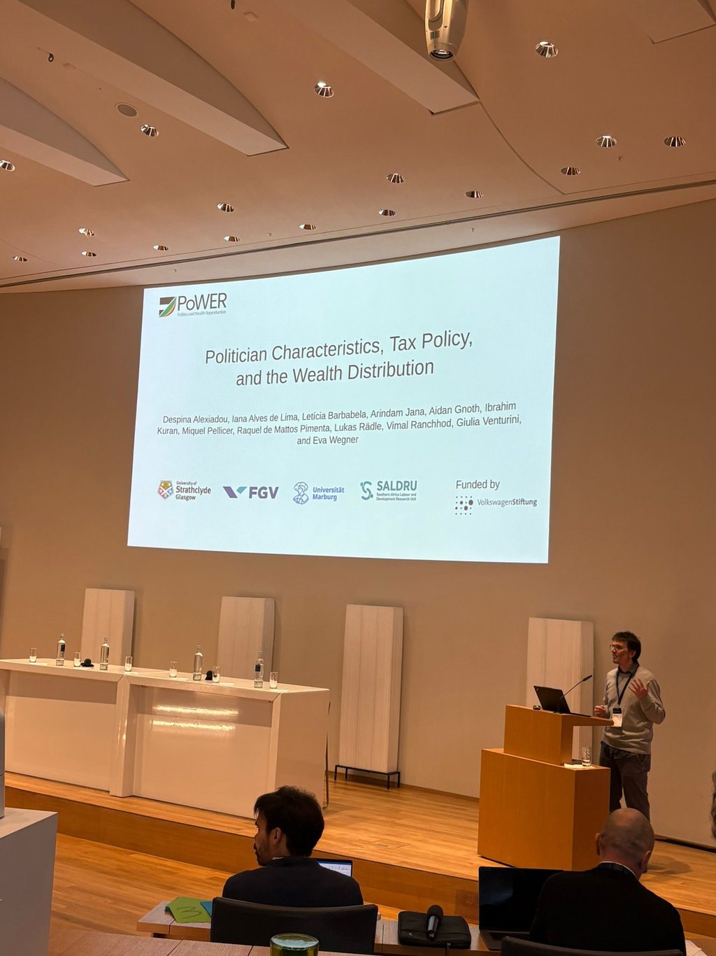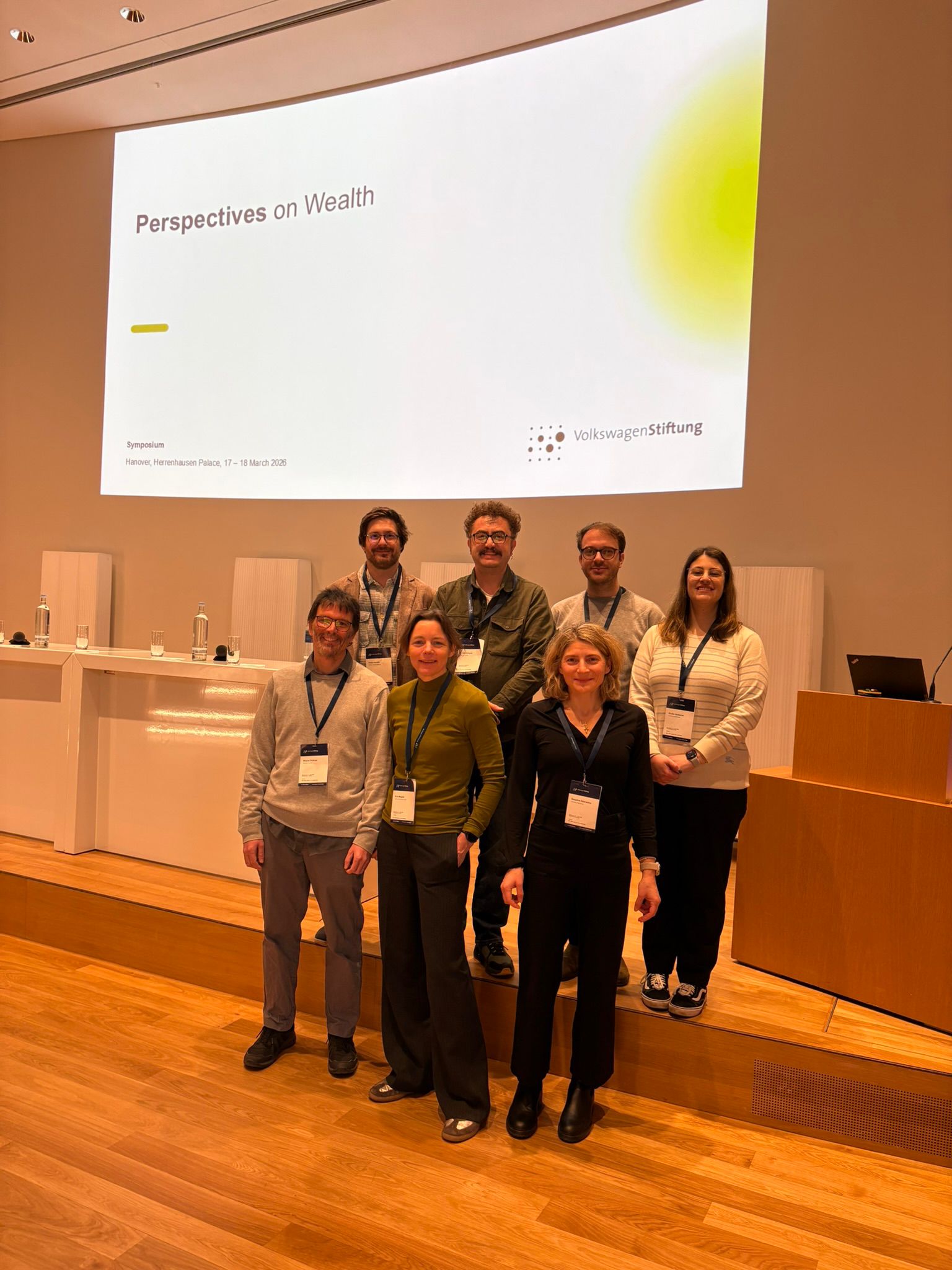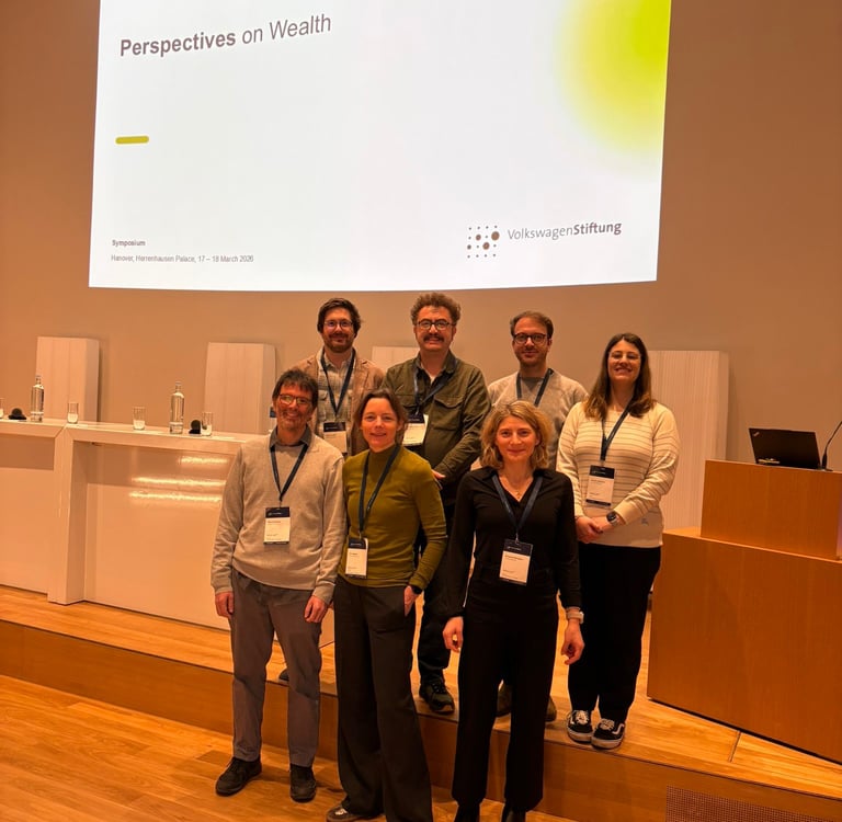 In March 2025, our team travelled to Schloss Herrenhausen in Hannover to present the current status of our project at the "Perspectives on Wealth 2026" symposium, organized by the Volkswagen Foundation. The two-day event brought together researchers from across the foundation's Perspectives on Wealth initiative to share findings and explore the many facets of wealth as a social, cultural, and political phenomenon. Despina Alexiadou and Giulia Venturini from the University of Strathclyde, and Miquel Pellicer, Eva Wegner, Aidan Gnoth, Ibrahim Kuran, and Lukas Rädle from the Philipps-Universität Marburg presented preliminary results from our work on the link between politician characteristics, tax policy, and the reproduction of wealth, and had the opportunity to exchange ideas with colleagues working on related questions from sociology, economics, history, and political science.