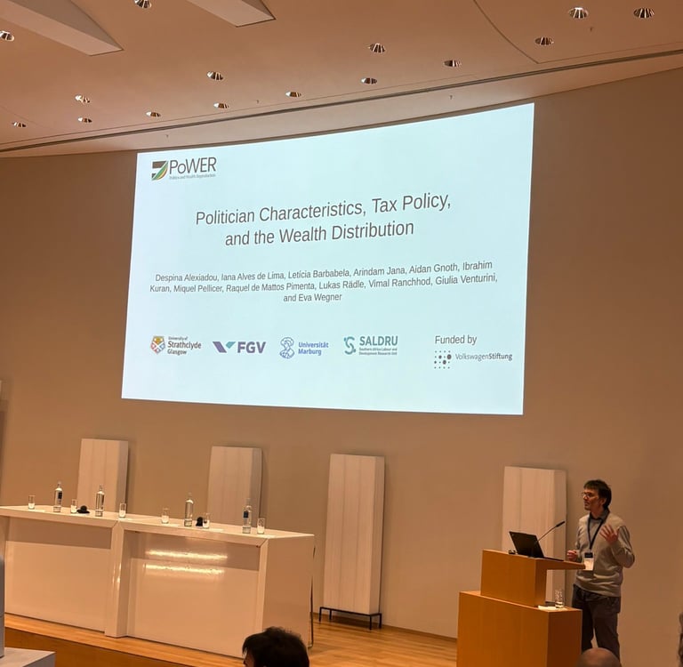In October 2025, postdoctoral researcher Iana Lima presented the paper “Career Politicians and the Quiet Dilution of Brazil’s Tax Reform: The Case of Offshores and Super-Rich Investment Funds,” co-authored with principal investigator Raquel Pimenta, at the Annual Meeting of the National Association of Postgraduate Studies and Research in Social Sciences (ANPOCS), held in Campinas, São Paulo, Brazil, from October 22–24. The study investigates how Brazil’s 2023–24 tax reform was reshaped during the legislative process, revealing how political trajectories and organizational affiliations influenced the dilution of its redistributive goals. Combining document analysis, prosopography, discourse network analysis, and logistic regression, the research sheds light on how career politicians and institutional networks contribute to preserving elite advantages in fiscal policymaking.